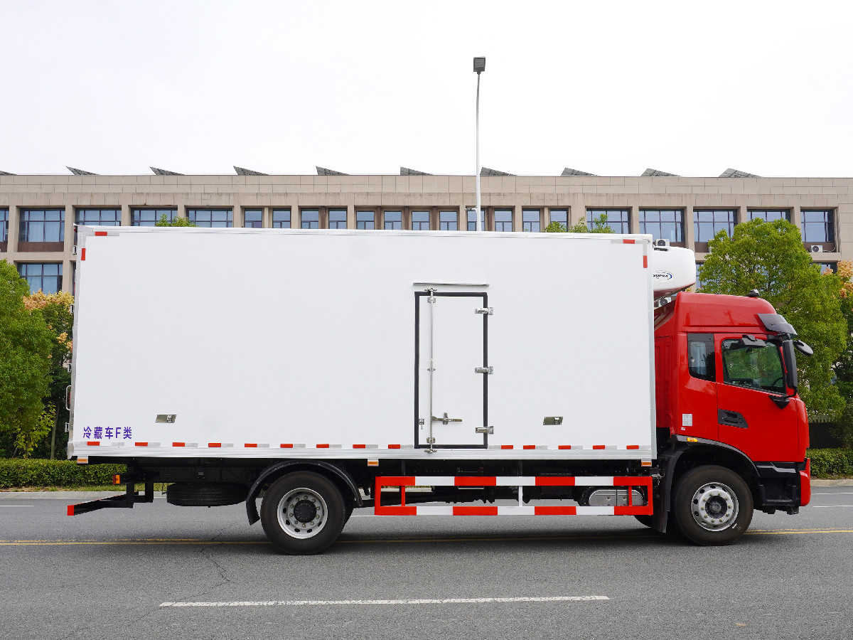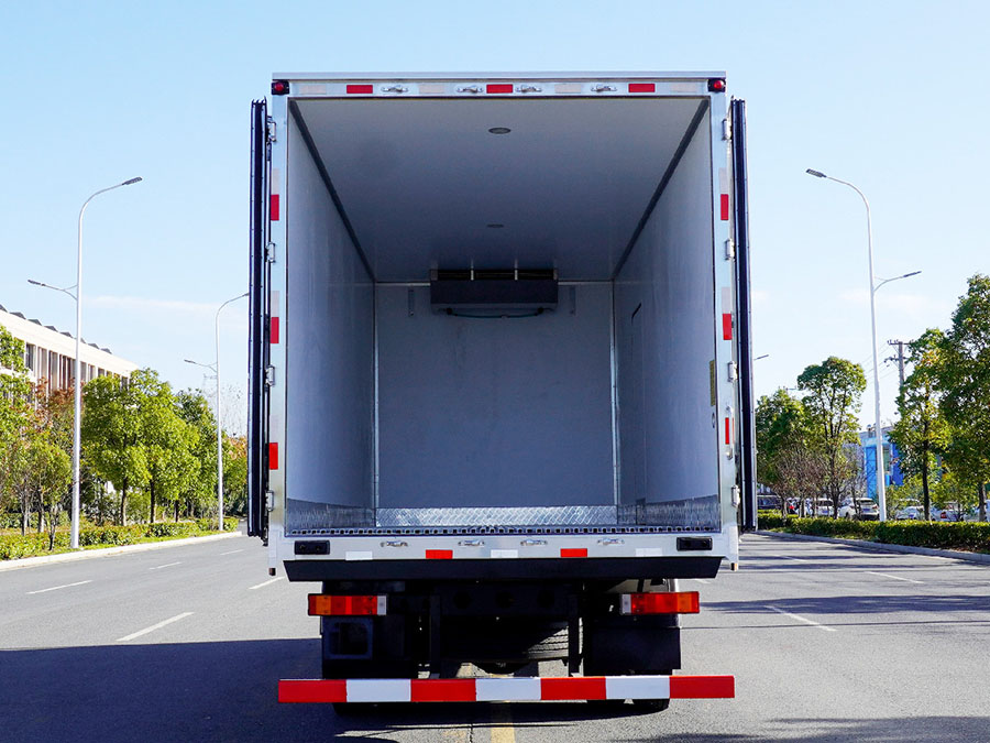 (2)廂板材質(zhì):內(nèi)外壁板選用國(guó)內(nèi)優(yōu)質(zhì)玻璃鋼(不吸光、隔熱性好、硬度強(qiáng)、抗氧化);中間保溫層為XPS擠塑聚笨板;廂體厚度8CM。地板采用鋁花紋板,門邊條采用迷宮式橡膠密封條。
