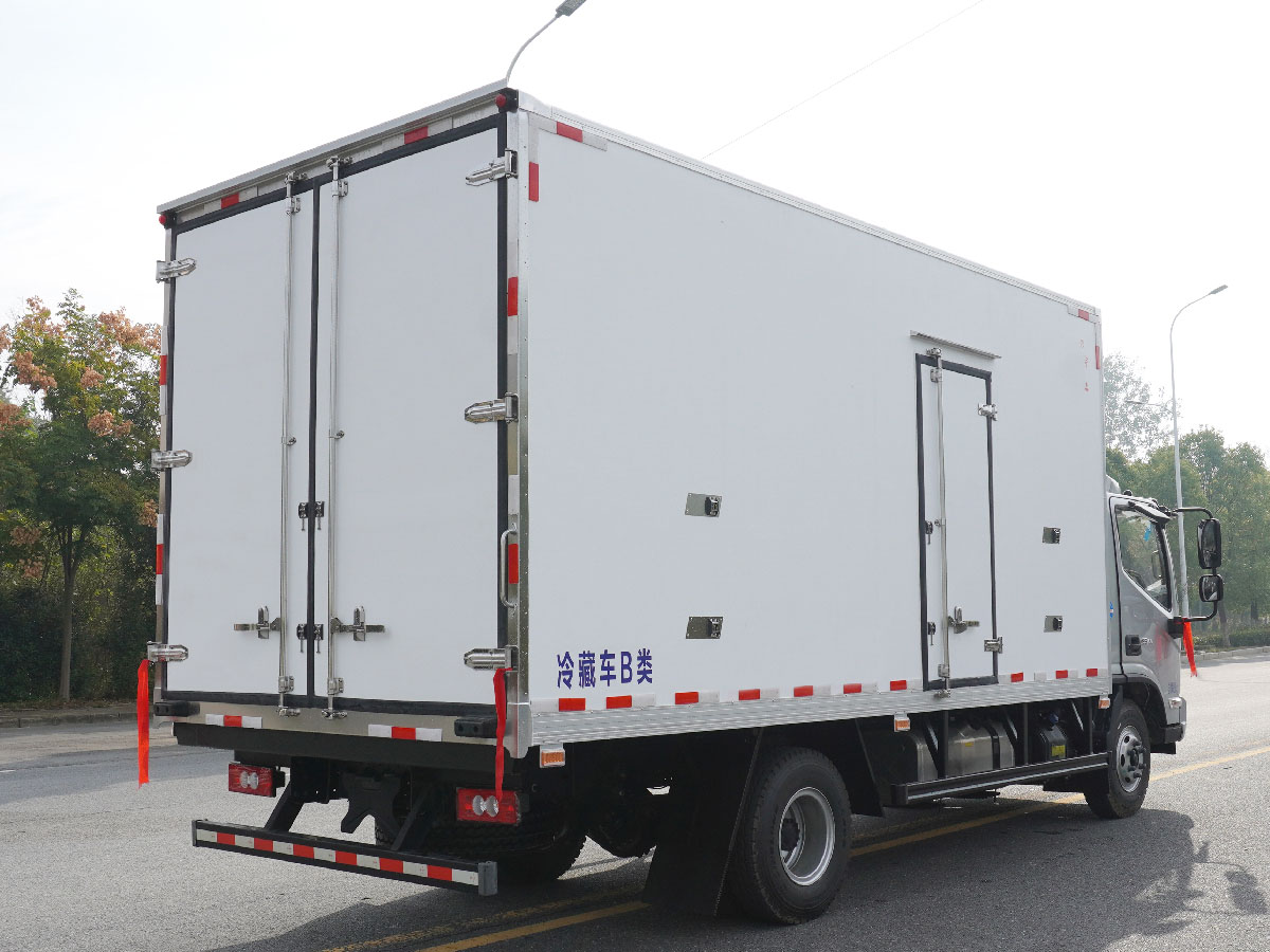 (2)廂板材質(zhì):內(nèi)外壁板選用國(guó)內(nèi)優(yōu)質(zhì)玻璃鋼(不吸光、隔熱性好、硬度強(qiáng)、抗氧化);中間保溫層為XPS擠塑聚笨板;廂體厚度8CM。地板采用鋁花紋板,門邊條采用迷宮式橡膠密封條。