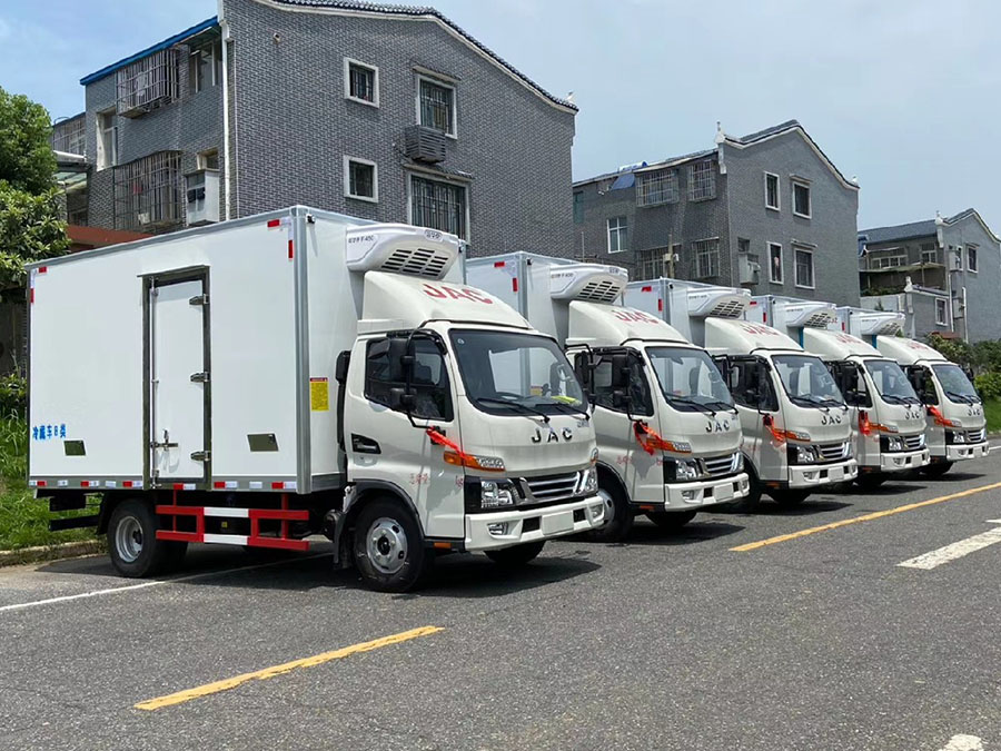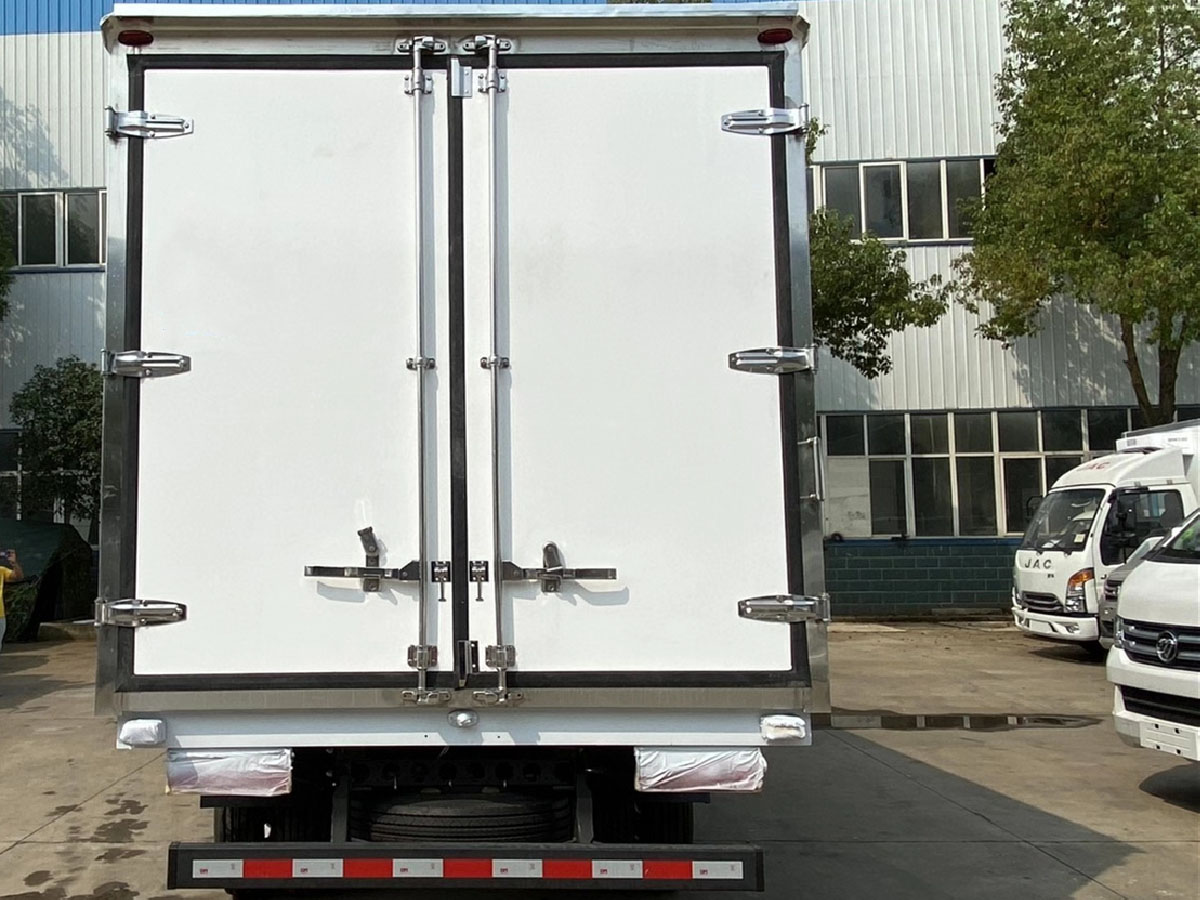 (2)廂板材質:內外壁板選用國內優質玻璃鋼(不吸光、隔熱性好、硬度強、抗氧化);中間保溫層為XPS擠塑聚笨板或聚氨酯;廂體厚度8CM。地板采用鋁花紋板,門邊條采用迷宮式橡膠密封條。